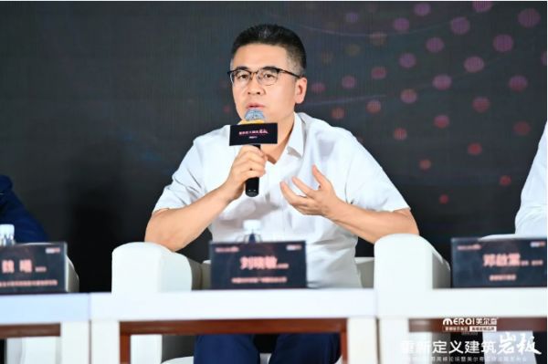 ▲华夏陶瓷网总编辑刘小明指出:“过去瓷砖做的是室内墙地面装饰,而美尔奇提出跨界建筑领域,推动瓷砖真正走向建筑化。”