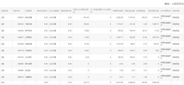 截止至2020年12月31日,公司证券投资的情况如下: