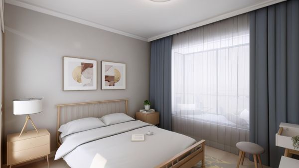 卧室选择的是那种很简约的床,其实整体空间下来还是蛮大的,而且一个飘窗上基本也成了周末追剧的一个场所,床头放一些绿植可以增加一下房间的温馨,毕竟这是自己的家。