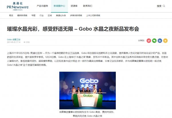 2011年Gobo高宝与奥美广告公司合作,发布全新品牌形象,并启动全国品牌传播计划,致力于打造“感受·舒适无限”的全新卫浴体验。更显精致、典雅的Gobo高宝卫浴产品,彰显了时尚与国际感,为具有生活品味的消费者营造舒适、时尚的卫浴意境。