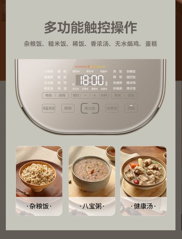 苏泊尔电饭煲怎么样?日常煮饭、杂粮饭、糙米饭、养生粥、煲仔饭、香浓汤,各种健康美食,苏泊尔远红外电饭煲在家就能轻松做,是一台多功能复合型的“煲才”!还有24小时预约烹煮功能,全天候守护你的美食需求。早餐,一碗鲜香海鲜粥,米粥软烂、虾味鲜甜,几颗葱花点缀,用鲜香唤醒肠胃;午餐,一碗喷香煲仔饭,油薄锅巴、嘎吱脆香,佐以咸香腊肠,瞬间令人胃口大开;晚餐,一碗香浓营养鸡汤,奶黄色泽、醇香四溢,配以香甜米饭,疗愈疲劳心神。