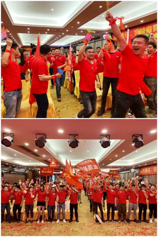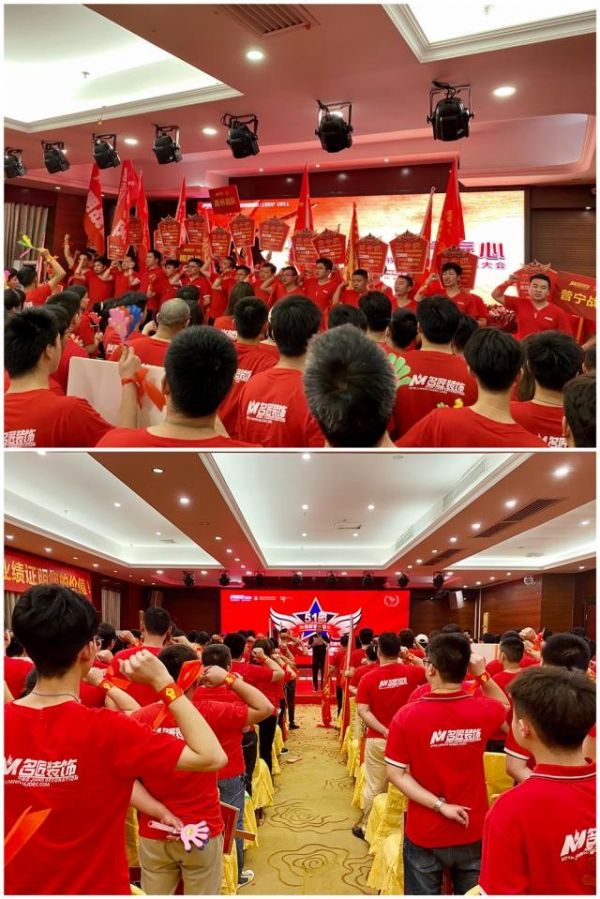 大会上,来自名匠装饰(集团)佛山、北滘、南海、高明、河源、普宁、揭阳、梅州、茂名、大良、容桂、高州、黄岐、顺德、大沥、陈村、于都等17家分公司,300余位名匠人身着统一的服装,步伐整齐地列队入场,组成壮观的红色海潮。每个人脸上都洋溢着轻松自信的笑容,斗志昂扬,许下奋斗目标。