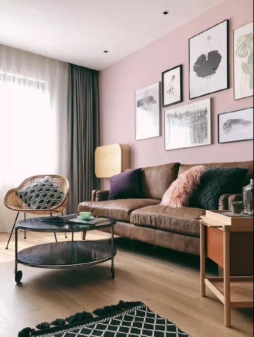 还有这种实体比照片还要好看的脏粉搭配质感满满,复古沙发和极简茶几的烘托下,墙面上的组合挂画是不是一下就成了最和谐最有设计感的存在呢~而且分分钟做到了独一份儿,就是跟别人不一样。