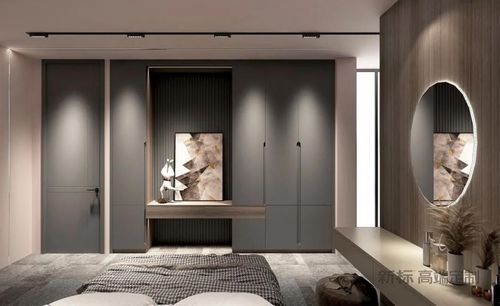 柔滑亲肤的雅仕灰为整个卧室奠定基调,营造出安稳宁静的氛围。到顶的衣柜、木门统一搭配,保持了简洁的空间视角,让美感与质感同步提升。