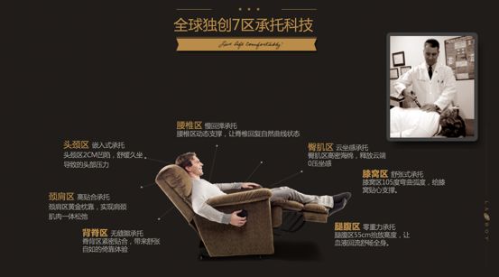 LAZBOY致力于品牌产品力研发,不断创新技术,只为带来更加舒适健康的生活体验。根据人体工学,LAZBOY全球独创7区承托技术,让沙发单椅可以完全贴合身体曲线,身体的头、肩、背、腰、腿、臀、膝都能被承托起来,这种舒适健康的设计,让全身都能够放松下来好好休息。每天回家在沙发上躺一躺,让生活更舒适健康。