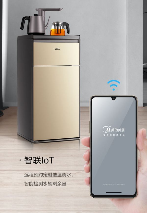 当然,为了实现用户的轻松使用与智慧体验,美的YR1808S-X茶吧机也采有一键轻松联网设置,手机下载美的美居APP即可轻松掌握用水量、用水习惯及剩余水量,同时为你总结全家饮水规律,生活更舒心。
