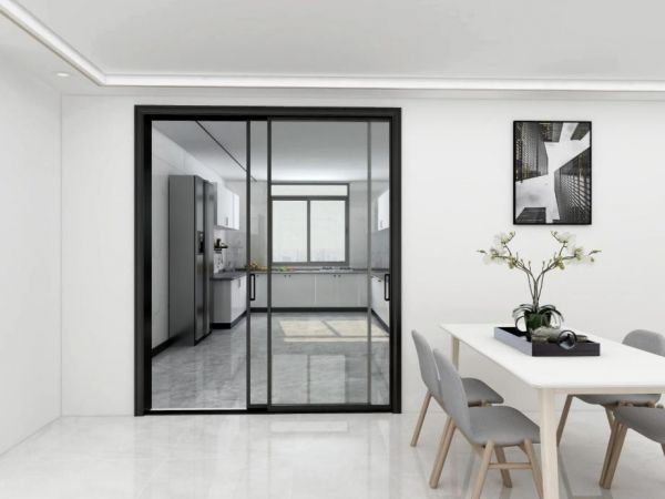 厨房与客厅相通,为了保证客厅的清新空气,通常选用推拉门作为隔断。简洁利落的黑色窄边框,耐脏耐污与清洁方便之外,又能阻止油烟的外流,实现开放式厨房的透视感,更增时尚气息,成为很多家庭厨房门窗的首选。