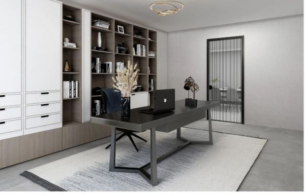 书房平开门的夹丝玻璃设计,线条层次感分明,美观高级,隔音降噪,超高颜值与实用价值并存。