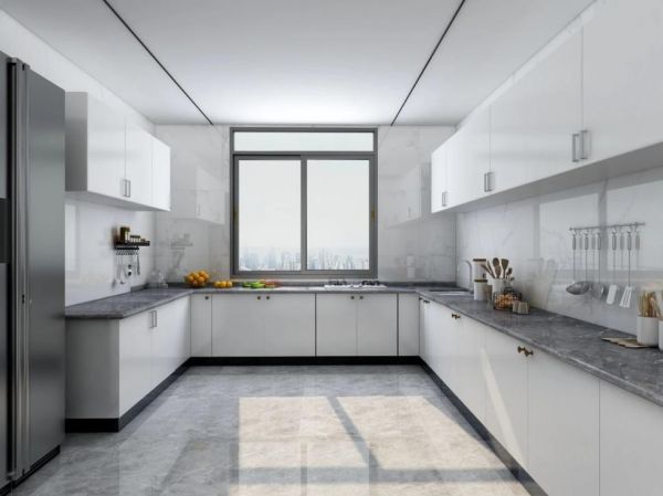 厨房安装窗户,一能补充光照,二能排气通风。沉稳大气的灰色窗框与柔和雅白的橱柜和墙面相融合,和谐美观。而没有安装窗户的厨房,不仅零采光度,油烟不畅通也容易滋生细菌,危害家人健康。封闭的空间沉闷阴郁,没有了做饭的动力,也失去了生活的烟火气息。