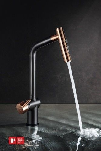 从中脱颖而出的悍高宾尼斯抽拉龙头,是由悍高与意大利法拉利设计团队Pininfarina联合研发设计。传源自意大利水上都市的浪漫血统,它以简洁柔美的线条,完美融合科技与设计,传达产品的精致美感,PVD玫瑰金和电泳黑两种颜色,更能适配不同的家居风格。