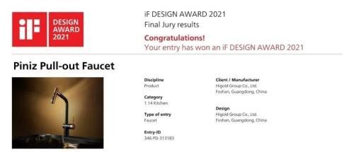 全球的好设计!悍高宾尼斯抽拉龙头喜提德国iF设计大奖