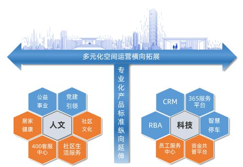 “人文”系列产品标准建设紧跟国家发展趋势,在党建引领下,打造了公益事业、社区文化、居家健康、社区生活服务及400客服中心等服务产品,千余条服务标准为支撑,通过3条生活品质线,15个生活场景,4大专业版块以及68个生活品质提升项,为客户提供超预期的全流程专业化物业服务。