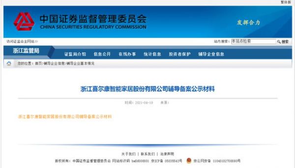 (本文转自卫浴头条网)据中国证监会浙江监管局消息称,浙江喜尔康智能家居有限公司(下称“喜尔康”)已同安信证券签署上市辅导协议,并于4月19日在浙江证监局完成备案。辅导时间约为2021年4月至2021年10月。