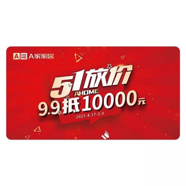 你想要的A家家居都能满足你。五一线下门店优惠活动,9.9元VIP特权卡,最高可抵10000元。活动期内VIP卡最高可抵10000元,门店消费实付金额满5000元减200元,满10000元减400元,满15000元减600元,以此类推,最高可抵10000元。