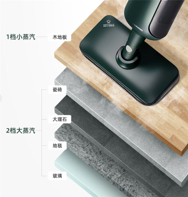 专为中国木地板家庭特别设计出两档蒸汽可调节,1档小蒸汽针对木地板,避免木地板在长期清洁过程中受潮变形;2档大蒸汽针对地砖、地毯等耐高温材质地面,强效清洁,有效消毒杀菌。