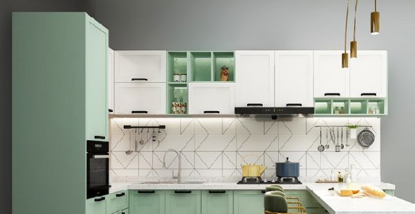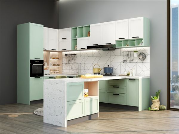 如何快速去除厨房的油腻感?领尚橱柜花涧拾雨从风格设计以及功能布局入手,让整体厨房充满小清新味道。