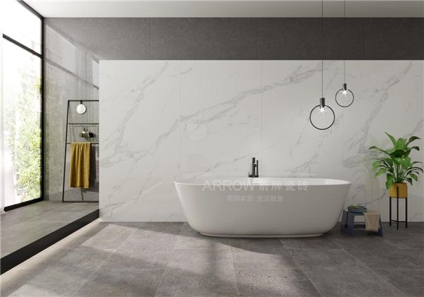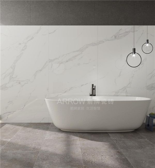 为了能带给空间更完美的视觉效果,箭牌瓷砖慕斯白设计了1200×2400mm的超大规格,砖面上无限连纹自然流动融汇,一石N面的效果,让瓷砖无论怎么铺贴,都能完美实现无缝拼接,带给你大而不凡,连纹不断的视觉惊艳。铺贴在浴室的墙面上,让瓷砖释放的静谧舒适感从你的眼睛蔓延至全身,唤醒你身体里的元气神经。