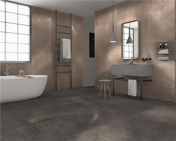 相较于常见的白色或灰色为基调打造的浴室,更为温和高级的瓷砖色调近年来也大受欢迎。在浴室中加入闪烁光影的装饰元素可以让空间变得更为温馨,增添高贵的都市气息。箭牌瓷砖鎏金幻影设计灵感来源于全球仅2台的鎏金劳斯莱斯幻影的动感光泽质感,AI技术的加持,让鎏金幻影系列拥有米灰、浅灰、中灰、咖色、深灰等5种色彩;从理性到浪漫的色彩变化,让浴室空间颜值丰富多姿,美轮美奂。