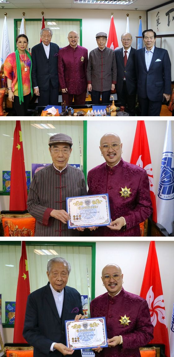 图3|国际标量波量子研究院创办人、联合国环境科政商论坛指导委员拿督斯里吴达镕教授SSAP(右)向第十一届全国政协文史和学习委员会副主任、第九届全国工商联副主席施子清SBS(左)颁授该院荣誉院长聘书。
