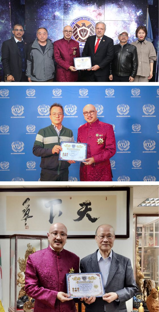 图12|拿督斯里吴达镕教授(右)聘请韩国驻华参赞沈载哲(左)任国际标量波量子研究院特邀研究员。