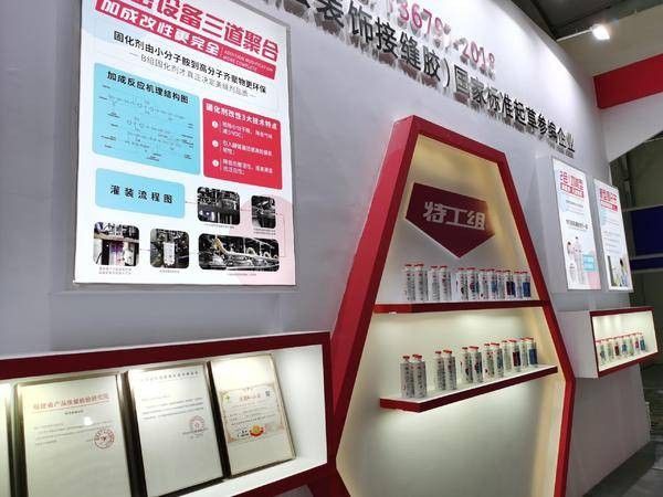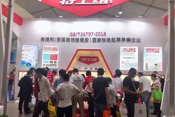 以环氧固化剂加成改性起家的特工组,展现出来的技术型品牌形象在众多美缝品牌当中与众不同,以“本体抗污”为基础性能的5D瓶装彩砂,所呈现出来的砂柔哑质感更是让众多观展商赞不绝口,还有一款用于美缝防脱落处理的“特粘剂”独领风骚,粘接牢固性现场测试,更是让诸多参展商对行业前景信心满满,再也不用为阴阳角、卫生间潮湿缝隙脱落担惊受怕。