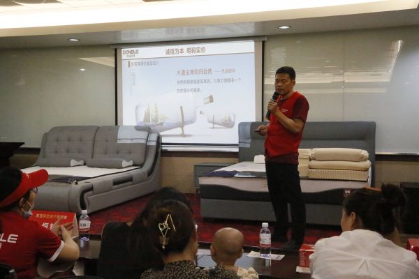 下午,在公司会议室,东宝床垫董事长陈德光先生为大家讲解公司文化。明码实价东宝床垫,同样的产品一个价格,和市场上定高价打大折扣的不一样。因为东宝床垫只赚取合理的利润,走利他的发展道路,将5星级的产品卖到3星级的价格,真真正正地让客户省钱、省时、省心。