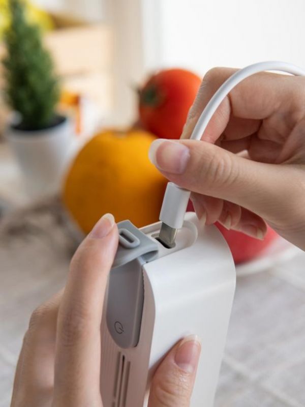 Soseki善思冰箱除味器,奶白色哑光机身搭配浅灰色硅胶配件,给人以清新、自然、干净之感,流畅自然的线条尽显产品做工精良,在冰箱里随手一放都能拍出质感大片。善思冰箱除味器巴掌大的长条形身材,立挂两用,冰箱囤满也有容身之处;衣柜、书柜、鞋柜等,适合于多场景使用。与需要重复购买、占空间的一次性除味盒相比,善思冰箱除味器通过USB线充电即可续航20天,0耗材更环保。