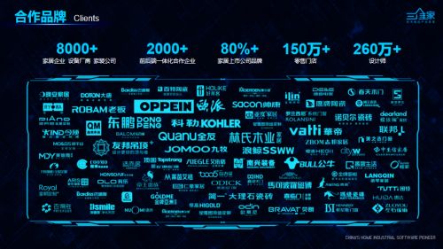 目前,三维家已服务超过8000家家居行业企业,成为企业数字化升级的“加速器”。近年来,三维家在西部家居服务市场深入布局,成为西部家居企业数字化工具的首选。全友家居、明珠家居、良木道、亚度家居、莱茵艾格、太子家居、居里亚、鼎派世家、KDDK等知名标杆企业已与或将与三维家建立战略合作关系,在数字化升级的道路上先行一步——