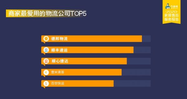 非标准化是家居商品最明显的特征,一个木制衣柜,就含有板材、钉子、滑轨、连接杆、挂条、膨胀管等各种材质的配件,物流包裹体积大重量大,运输过程中还要注意防潮防湿、避免碰撞损坏,严重考验着物流运输能力。报告中数据显示,商家首选德邦和顺丰合作。以家居物流头部企业覆盖全国的物流网络、强大的仓储吞吐能力和灵活高效的运输效率,确保家居商品的运输环节。再加以万师傅的最后一公里配送安装服务,为销售赢取机会。