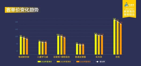 报告指出,近三年家居商品的售后服务客单价略有下降,并趋于稳定。