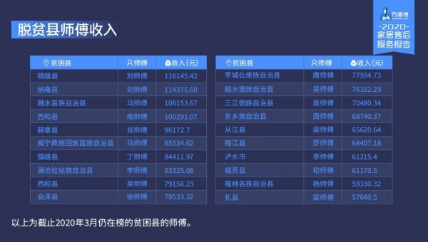 家居电商和互联网售后服务向小县城渗透,为脱贫县家居服务的师傅带来了就业机会,带动当地经济发展。数据显示,2020年16%的脱贫县师傅年收入超过全国居民可支配年收入。
