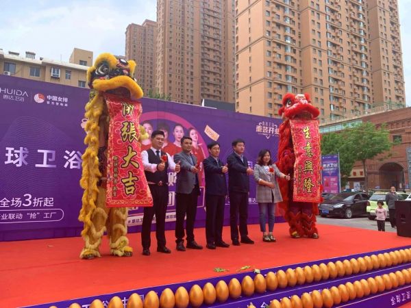 石家庄怀特装饰城惠达卫浴旗舰店开业现场,祥狮献瑞,锣鼓齐鸣,气氛隆重而热烈。惠达卫浴国内营销副总裁李建峰、石家庄&邯郸运营中心总经理张翠红、石家庄怀特装饰城总经理陈章等领导共同出席,见证这一重要时刻。