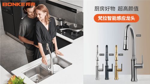 市场消费主体逐渐趋向年轻化,邦克近年来也推出了一系列新品,包括水易净水槽、梵拉感应触控龙头、浴室柜、阳台柜等等。尤其是梵拉感应触控龙头,颜值高设计新颖独特,在产品结构和科研技术上有了综合性的提升,深受年轻消费者喜爱。