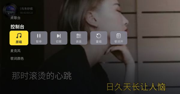 进入华为电视K歌模式后,在当贝酷狗音乐K歌频道的播放界面选择遥控器“上方向键”可以调出控制台,操作开关原唱、暂停播放歌曲、切歌、重唱等功能,“左键”可以重唱歌曲,点击“右键”则可以选择下一首待唱歌曲,想调出待播K歌列表的话用“菜单键”。
