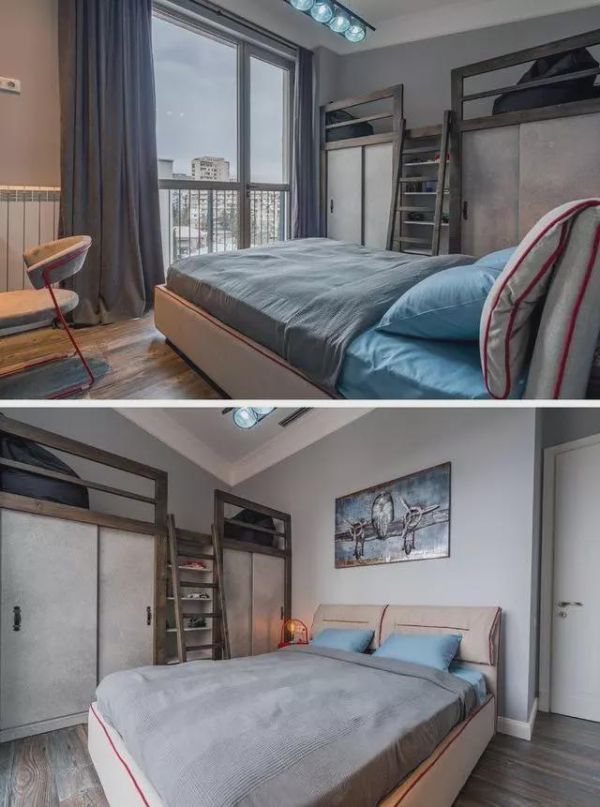 若房间再大一些,会有人选择放上下铺的子母床,这样就能够兼具客房的功能。或者说爷爷奶奶带着孙子能住在这样,睡觉也不会拥挤。