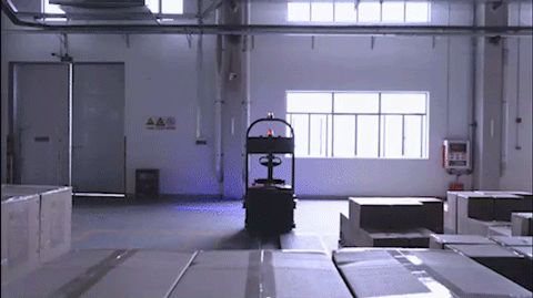 无人驾驶的AGV小车穿梭往来,通过程序和光感控制进行数据化产品配送。