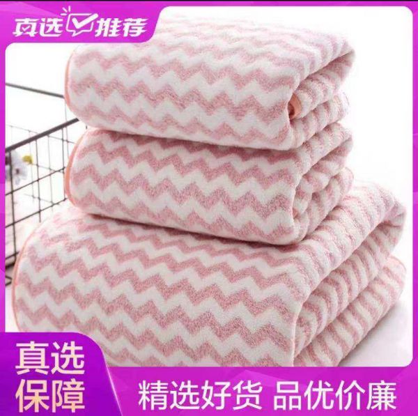 吸水性更好 斜月三星珊瑚绒毛浴巾三件套