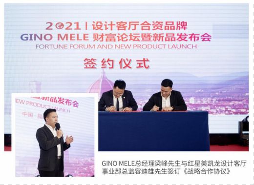 于此同时,新品发布会上,全球家居品牌典范红星美凯龙设计客厅事业部总监容迪雄先生与GINO MELE 签订《战略合作协议》,深化商业合作、联合营销等全方位合作。此次战略合作,GINO MELE在中国市场上迈出重重的一步。未来,GINO MELE 将继续秉承以客户为中心的宗旨,以更加优质的服务和可靠的产品,助力更多客户实现商业成就,为中国的千万家庭,提供最好的家居设计与最优质、最贴心的服务。