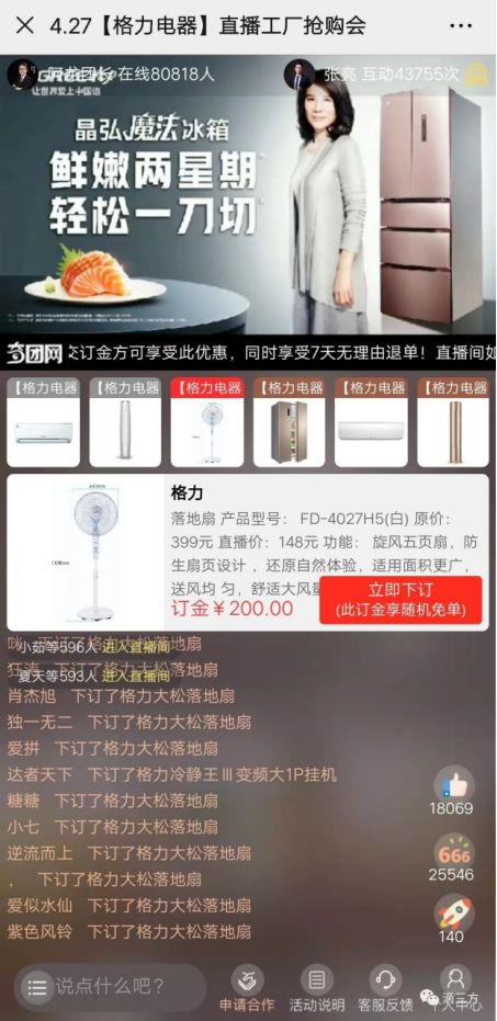 去年4月27日由奇团网助力格力电器在蜀南四城市展开的“直播抢购活动”上线。奇团网上短短四小时,直播引导下订2733单。出色的带货能力,赢得了格力品牌的一片赞誉。