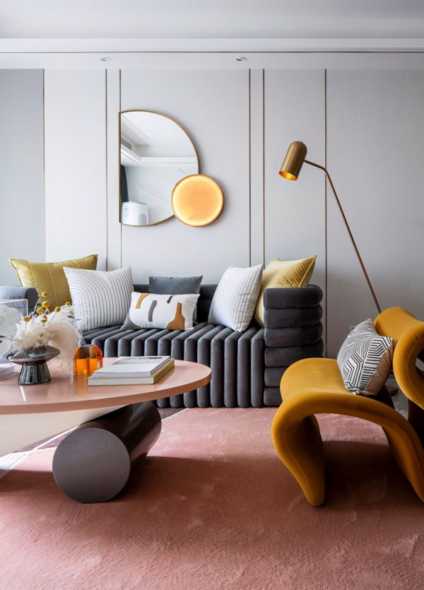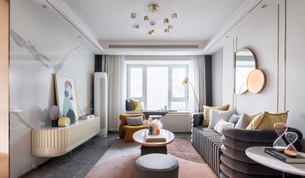 奶油黄、玫瑰果橙、薄荷绿、蜜桃粉、天空蓝、藕荷紫...各种色泽温润,饱和度低的马卡龙色共处一室,勾勒出甜美舒适的视觉感官,而圆形、三角形、正方形、圆柱体...各类现代时尚的几何造型家具及饰品自在纷呈,搭配缤纷清新的马卡龙色,跳跃的时尚感,活力而青春,令人元气满满。