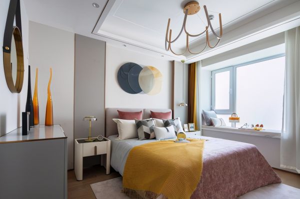 住进马卡龙里,做梦都是鼾甜的,卧室通过色调饱和度和几何造型的的区分,在整体感之下去突出空间层次,创造一个宁谧、明亮、自由的时光之境,让人沉浸在幸福的马卡龙世界里,去联想一切美好又甜蜜的事情。