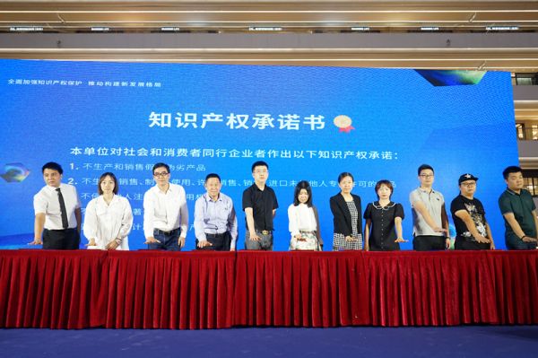 (新特丽技术研发总经理王志星参与“尊重原创设计保护知识产权”倡议仪式(左4))
