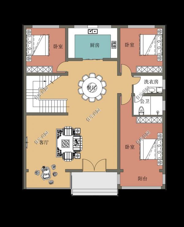 一二两层各设计公卫一间,上下水对齐满足生活所需。