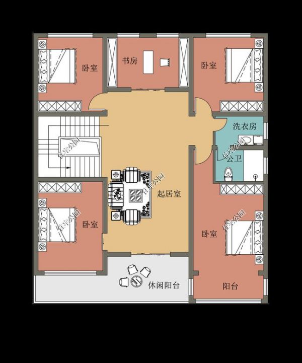 原来西面不开窗有这么多好处,今天住宅公园便给大家带来一套西墙无窗的户型图,房子占地12.3m×14.2m。