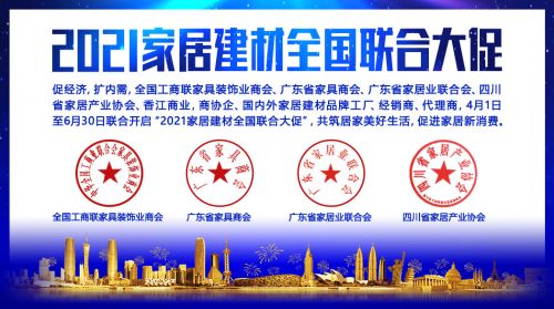 促经济扩内需,全国工商联家具装饰业商会、广东省家具商会、广东省家居业联合会、四川省家居产业协会、香江商业,商协企、国内外家居建材品牌工厂、经销商、代理商,联合开启“2021家居建材全国联合大促”共筑美好居家生活,促进家居新消费。集结国内国外家居建材大牌年度新品,数万件套家居建材新品,传统家居、智能家居、智能定制、智能厨房、智能家电、新潮家居、新型材料等,国内外家居建材全品类共聚采购盛事,4月24日全国首发,提前引爆市场。黄金周大促5月1日即将盛大开启。