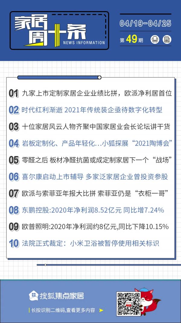 家居周十条|索菲亚欧派争夺“衣柜一哥”、喜尔康启动上市辅导…