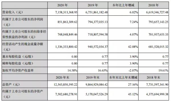 4月21日,东鹏控股(003012.SZ)发布2020年年度报告。据公告显示,报告期内,东鹏控股营业收入71.58亿元,同比增6.02%;归属于上市公司股东的净利润8.52亿元,同比增7.24%;基本每股收益0.8元。