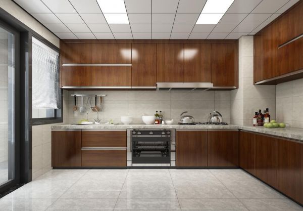 从L型厨房的布局、定制橱柜、米色墙砖和灰色天花板,可以看出业主十分注重厨房的功能性和统一性,隐藏烟机灶具后,显得空间更整洁大气。台面一处用来洗菜做饭,另一处台面可以切水果,或者准备餐前酒,不负好”食”光。