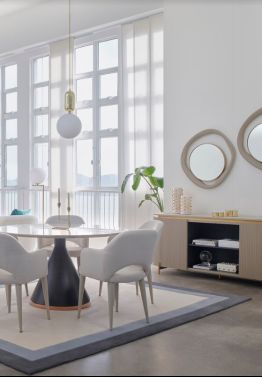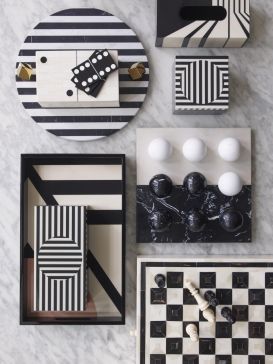 想增添玩味,可利用质感、对比色调和形状去做变化及点缀,于白色为主调的客厅摆放更显层次的家具,例如在玛瑙和抛光混凝土家具旁摆放 Circa 白色云石侧桌;云石条子托盘 和 Quant 长方形盒子亦能为整体加添充满对比的条纹和色调,激发空间的活力,营造视觉丰富度。