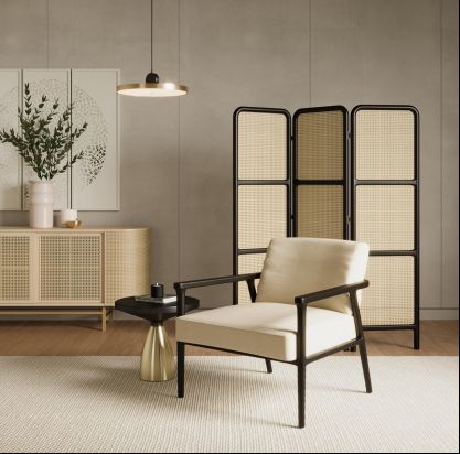 全新Tokyo Moment 系列以融合日本美学的设计缔造和谐感,带来一室禅风。 系列家具包括 Odi 布艺椅子及 Tokyo 屏风,黑色衬磨砂木炭框,为视觉营造细腻的层次。